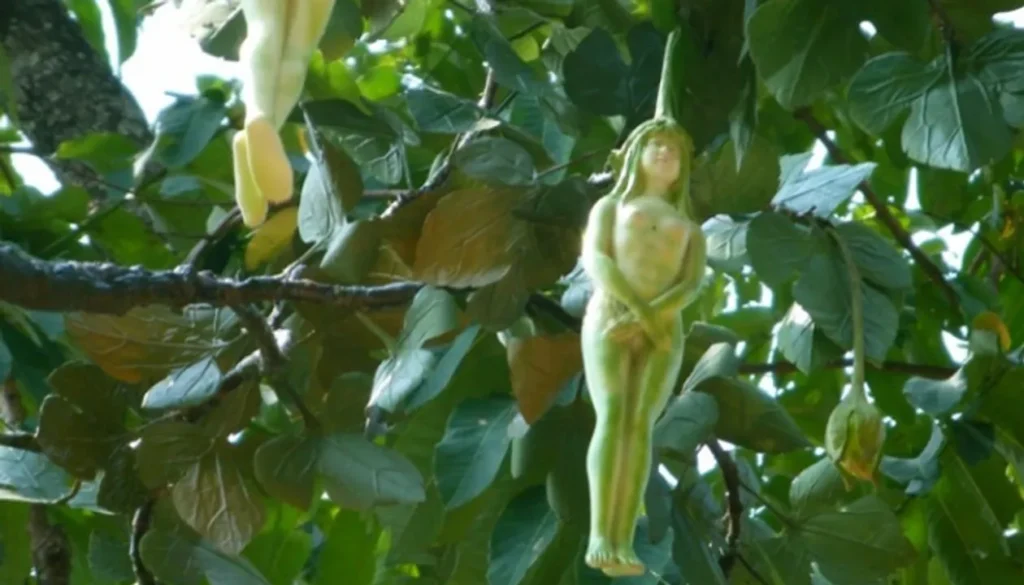 କୁହାଯାଏ ଯେ ସେ ଏହି ଫଳଗୁଡ଼ିକୁ ତାଙ୍କ ସାଙ୍ଗରେ ନେଇଯାଇଥିଲେ । ଯିଏ ସେମାନଙ୍କ ସହ ସମ୍ପର୍କ ସ୍ଥାପନ କରିଥିଲେ, ସେ ଚାରିମାସ ପର୍ଯ୍ୟନ୍ତ ଗଭୀର ନିଦ୍ରାରେ ଶୋଉଥିଲେ ଏବଂ ସେମାନେ ସେମାନଙ୍କର ସମସ୍ତ ଶକ୍ତି ହରାଉଥିଲେ | ଲୋକମାନେ କୁହନ୍ତି ଯେ ସେହି ଦିନଠାରୁ ମହିଳାଙ୍କ ଶରୀର ଆକୃତିର ଫଳଗୁଡ଼ିକ ଏହି ଗଛରେ ହୋଇଥାଏ | ତେବେ, ଏହା ପ୍ରକୃତରେ ଫଳ କି ଅନ୍ୟ କିଛି ତାହା ଏପର୍ଯ୍ୟନ୍ତ ନିଶ୍ଚିତ ହୋଇନାହିଁ ।