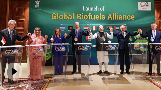 ଦିଲ୍ଲୀରେ ଅନୁଷ୍ଠିତ ଜି-୨୦ ବୈଠକରେ ପ୍ରଧାନମନ୍ତ୍ରୀ ନରେନ୍ଦ୍ର ମୋଦୀ ଗ୍ଲୋବାଲ ଜୈବ ଇନ୍ଧନ (Global Biofuels Alliance) ମିଳିତ ମଞ୍ଚ ଘୋଷଣା କରିଛନ୍ତି । ବର୍ତ୍ତମାନ ପର୍ଯ୍ୟନ୍ତ ସମୁଦାୟ ୧୯ ଟି ଦେଶ ଏବଂ ୧୨ ଟି ଆନ୍ତର୍ଜାତୀୟ ସଂଗଠନ ଏହାର ସଦସ୍ୟ ହୋଇଛନ୍ତି।
